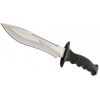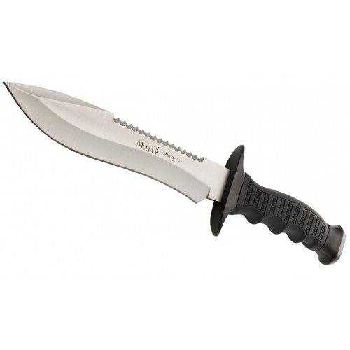 7 1/8" 420H Stainless Steel blade with Kraton Rubber handle and leather sheath.